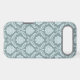 A vintage style decorative damask surface pattern influenced by rococo classical design in duck egg blue color detail on a teal background.