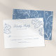 Add a touch of timeless elegance to your wedding invitations with these Vintage wedding RSVP cards. Adorned with unique blue rococo leaf illustrations on a pristine white backdrop, these cards instantly add a whimsical charm to your wedding stationery. What's more, our reply text template is as classy as it is simple to tailor to your needs - ensuring that your RSVP cards will be as special as your big day.