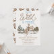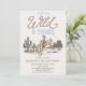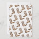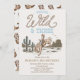Cowboy themed third birthday invitation featuring a western desert scene and, cowboy and rope like text heading. This young, wild and three birthday invitation also features a boot pattern on the back of the invitation.