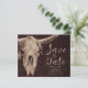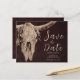 Invite your guests to your special day with these country western farmhouse rodeo bull skull budget Save The Date wedding invitations. Rustic brown texture background to customise your information on. Image copyright Marg Seregelyi Photography.