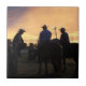 Photo print of cowboys sitting on horses and fence printed on ceramic tile