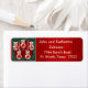 Western holiday return address labels with rodeo event Christmas ornaments on red background. The text built into the design says Merry Christmas. The other text needs to be changed to your personal information.