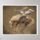 High action image of a rodeo rider attempting to stay on a bucking horse. Pastel by award winning artist Kathie Miller.