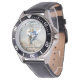 My husband loves the watch, he likes the dial, the graphics, the band, and it keeps perfect time.