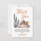 Cute boy's western themed first birthday thank you card featuring a cactus desert landscape, rope style word one, and hand drawn horseshoe. Ideal for a western themed first birthday party.