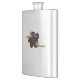 The product is a good size and came exactly as it was pictured. The lid is not attached to the flask, which could be dangerous on drunken nights... The print came out surprisingly well and looks very sharp. Would definitely recommend.