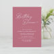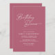 Modern and simplistic style birthday dinner invitations with "birthday dinner" in a handwritten-style script font. White text on a dark pink background. Can be changed to any age.