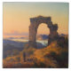 This design features a painting by the German artist Andreas Achenbach (1815–1910), who was associated with the Romantic movement and the Düsseldorf School of art. It depicts Roland’s Arch, a famous archway constructed out of stone and bricks. It is located on a hill high above the Rhine Valley in Germany. The arch is known as "Rolandsbogen" in the German language. A traveller can be seen here standing in front of the arch and admiring the majestic view of the Rhine River that can be seen through it. There is a beautiful red sunset in the sky. The original artwork was painted in 1834.