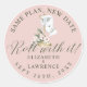 Sometimes you just have to roll with it. Our beautiful elegant covid themed save the date sticker is perfect to announce your new wedding date. Our design features our hand-painted watercolor elegant toilet paper gold stand and toilet paper roll with an arrangement of beautiful watercolor cherry blossom florals. "Roll with it" is designed with beautiful elegant calligraphy. Blush pink background with a simple white border frames this beautiful save the date sticker.Add your monogram to the toilet paper roll for an extra personal touch. Artwork created by Moodthology Papery