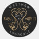 Roll With It LGBTQ Gold Toilet Paper Save The Date Classic Round Sticker