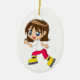 Ornament with a cute cartoon girl roller blading (or inline skating)