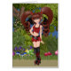 Darby the Roller Derby Fairy is a manga shoujo style faery and she is wearing a red top and skirt with hearts on her knee pads, red and black diamonds on her socks, and flames on her skates. She has black and red wings and big curly pig tails. She is skating near the woods past the beautifully coloured mushrooms. Illustration by KLeighE of Hinterland Harmony Art and Illustrations.