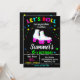 Let's roll with this fun roller skate birthday invitation! Features white roller skates with pink wheels and rainbow laces on chalkboard background with neon stars and confetti. Perfect for skating-themed birthday parties, roller rink celebrations. Retro design with bright colors creates excitement. Great for kids who love roller skating, disco, and retro vibes. Create a rolling good time for your skater's special day!
