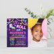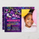 Neon glow theme girls roller skating birthday party invitation with photo