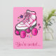This invitation to a roller skating birthday party features a decorative pink skate. Let us know if we can help you make up your invite!