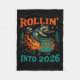 Rollin’ Into 2026 Funny Raccoon Dumpster Fire Fleece Blanket
