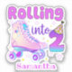 Celebrate your little one's second birthday in style with this adorable "Rolling Into 2" design featuring cute purple roller skates! Perfect for a roller-skating-themed birthday party.