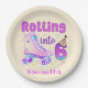 Rolling Into 6 - Cute Purple Roller Skate Birthday Paper Plate