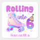 Rolling Into 6 - Cute Purple Roller Skate Birthday Square Sticker