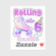 This cute and purple design features the phrase "Rolling Into 6". It is perfect for a roller skater's birthday celebration.