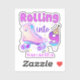 This cute and purple design features the phrase "Rolling Into 9". It is perfect for a roller skater's birthday celebration.