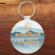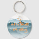 This keychain features wavy smoky mountains landscape in teal blue gradient color, and the typography quote "The mountains are calling".