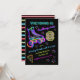 Let's Roll and glow with this neon roller skating birthday party invitations. Features neon fonts, pizza, stars and roller skates on a black background. Neon coloured bars on the back. Great for a girl or boy! All wording can be changed. To make more changes go to Personalise this template. On the bottom you’ll see “Want to customise this design even further? Click on the EDIT using Design tool. From there you can change some of the fonts & some colours, move things around or delete what you need.