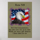While we were still sinners,Christ died for us.On a poster.With A Eagle in front of American flag.Realistic artwork created from an oil painting.