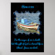 Rom 6:23 For the wages of sin is death, but the gift of God is eternal life in Christ Jesus our Lord.On a poster with a old boat in the calm ocean and a light blue frame.Realistic artwork created from oil paintings.