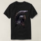 I give wanted to give this a 4 instead of a 5 because these Basic DARK T0shirts run unexpectedly SLIM or Narrow. Which is great if you do not have a potbelly, but I have a paunch. It isn't the shirt's fault that I've got a beer belly. The design and shirt itself is a quality cotton shirt. The color is more of a deep purple, but still a very pretty color. The Basic DARK T-shirts run a bit SLIMMER than the Basic Ts. The neck is a fraction narrower (or seems to be narrower) also. I'm a paunchy middle-aged woman and my neck is 12 inches (31cm) thick and the neckline fell about the same as in the photo of the man, and I had the desire to tug it a bit. So if you're a thick necked man or like loose shirts, be aware these are slimmer shirts. Once I get rid of my lockdown paunch it'll look great. The shirt washed well in cold water with no apparent bleeding. We don't have a dryer, so it hung dry. Did not shrink. Love the colors and the design. The design looks smaller on my shirt than it does on the model on-line. But still, it looks good on the shirt. The printing looks as it does on the model, just the size seems fractionally smaller. Washed garment in cold water, hung dry and design appeared unaffected.
