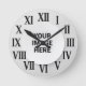 This elegant wall clock features bold Roman numerals and a clean central layout designed to display a photo, name, logo, or message. The timeless black-and-white style makes it a perfect fit for living rooms, bedrooms, kitchens, offices, cafés, studios, entryways, and reception areas. High-resolution printing ensures clear numbers and smooth color, while the durable clock mechanism offers accurate timekeeping and long-lasting performance. Custom background, logo and image available for buyers who want their preferred photo or branding displayed on the clock.