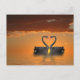 This postcard features romancing swans at sunset, with necks creating a heart shape. perfect for Valentines Day or other romantic special event.