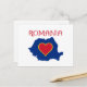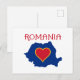 Share your love of Romania with this Romania map postcard. The postcard is designed with the colours of the Romanian flag and features a heart inside the map.