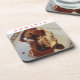 A close up view of Papanasi, traditional Romanian pastry printed on a set of souvenir coasters.