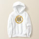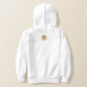 This boy's hoodie showcases a design that features a balloon extra bold print font with golden coloured letters black outline displaying the "Romans 12:15" KJV bible scripture verse inside of a crown of thorns in this faith based theme. This verse is from the Book Of Romans 12th chapter showing the 15th verse with this King James bible scripture verse. This hoodie is made from a 10 oz cotton-poly blend 100% cotton face set-in sleeves and double-needle stitched armholes & bottom band for extra durability has a matching image on the back.