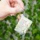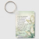 Keychain with inspirational quote scripture depicts a simple art design with butterflies and flowers on a green background. It features Bible Verse Romans 12:2, "Do not be conformed to this world, but be transformed by the renewing of your mind, that you may prove what is that good and acceptable and perfect will of God."