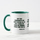 This two-tone mug displays a sunborn print font with black letters green outline displaying the "Romans 5:8" KJV bible scripture verse over a white background. This verse is referencing the Book Of Romans 5th chapter showing the 8th verse in this bible scripture quote theme from the King James bible. The rim & handle are glazed in matching colours available in 11-ounce or 15-ounce sizes microwave and dishwasher safe ceramic construction.
