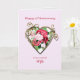 A very romantic and elegant 17th wedding anniversary card. A beautiful card to give to your wife. A golden heart holding a bouquet of painted roses.