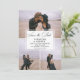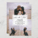 A romantic calligraphy save the date card with 4 photos grid collage.