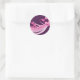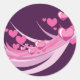Romantic Abstract Pink Hearts Design On Purple Classic Round Sticker
