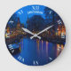 Romantic Amsterdam Canal At Night With Boats Large Clock