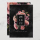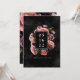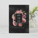 The back of the save the date card features a coordinating floral background on black.