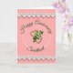 This romantic anniversary card is decorated with pearl and lace trim, centre image of two metallic gold entwined hearts with lilies of the valley. You can edit all of the text on the front and inside to make this card more personal or suitable for a different occasion.