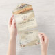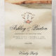 This elegant wedding invitation design features a watercolored leaf crest with a pumpkin accent. The top flap has a watercolor painting of a charming old barn surrounded by farmland. You can personalise the wedding crest with your initials. The back has a watercolor wash in coordinating colours. This lovely invitation is perfect for an autumn wedding.
