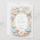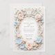 This elegant wedding invitation combines baroque artistry with soft floral details, creating a luxurious and timeless design. The ornate filigree frame in cream and ivory tones is adorned with pastel florals, including blush pink and light blue hydrangeas, set against a refined cream backdrop. The front design highlights a harmonious blend of vintage charm and romantic sophistication, while the back features a minimalist ornamental monogram surrounded by intricate, symmetrical motifs. Perfect for couples planning a classic, formal, or garden-inspired wedding, this design offers an exquisite and cohesive addition to your stationery suite.