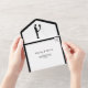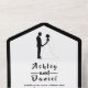 This elegant black-and-white arch wedding invitation is perfect for a modern wedding. The simple design features elegant black calligraphy and a bride and groom illustration on a clean white background.