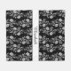 Black cosy fleece blanket with an elegant romantic white floral lines pattern desig and peronalized name print on a white ribbon in the center of the blanket.