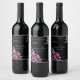 Romantic Black & Pink Floral Script Wedding Wine Label