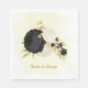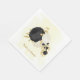 Romantic black & white flowers with gold leaves botanical wedding paper napkin.