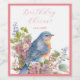 Romantic summer blue flowers and blue bird birthday wine label for the summer and spring birthday party and chic celebrations.